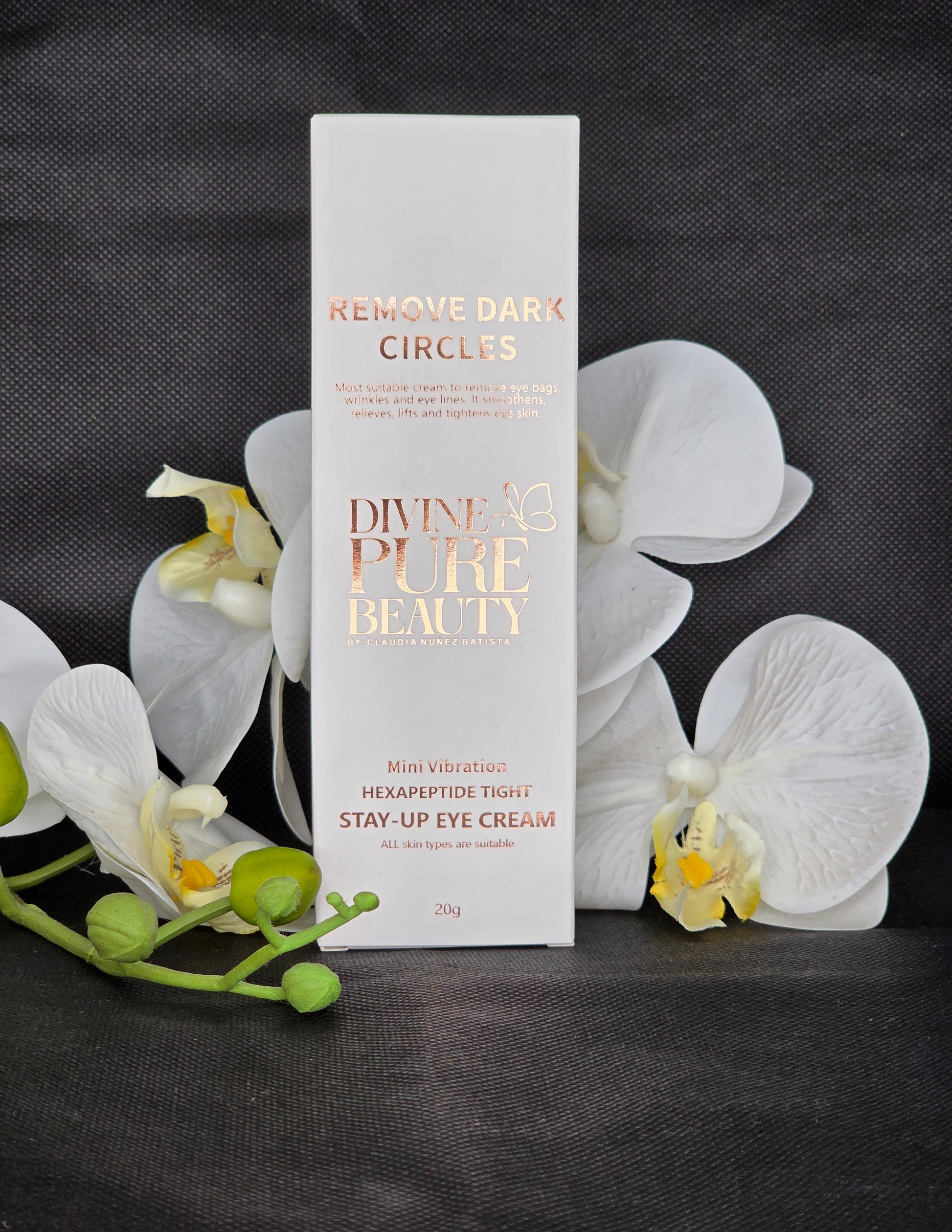 Experience the refined effectiveness of Divine Pure Beauty Stay-up Eye Cream, now enhanced with a new formula designed to visibly diminish eye bags, wrinkles, and fine lines. This luxurious cream smooths, lifts, and tightens delicate eye skin, providing a rejuvenated and well-rested appearance while delivering targeted relief. Elevate your skincare routine with this sophisticated treatment that restores youthful vitality around the eyes.