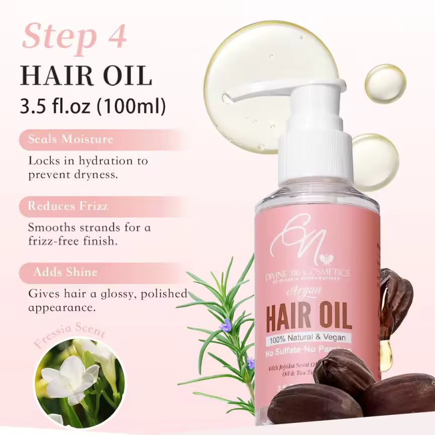 Unleash the divine power of 100% natural Divine 316 Hair Oil. Say goodbye to sulfates and hello to hydrated, protected hair with the nourishment of argan oil. Restore and rejuvenate your damaged locks, revealing luscious, healthy hair. Elevate your hair care routine with an exclusive, luxurious touch.