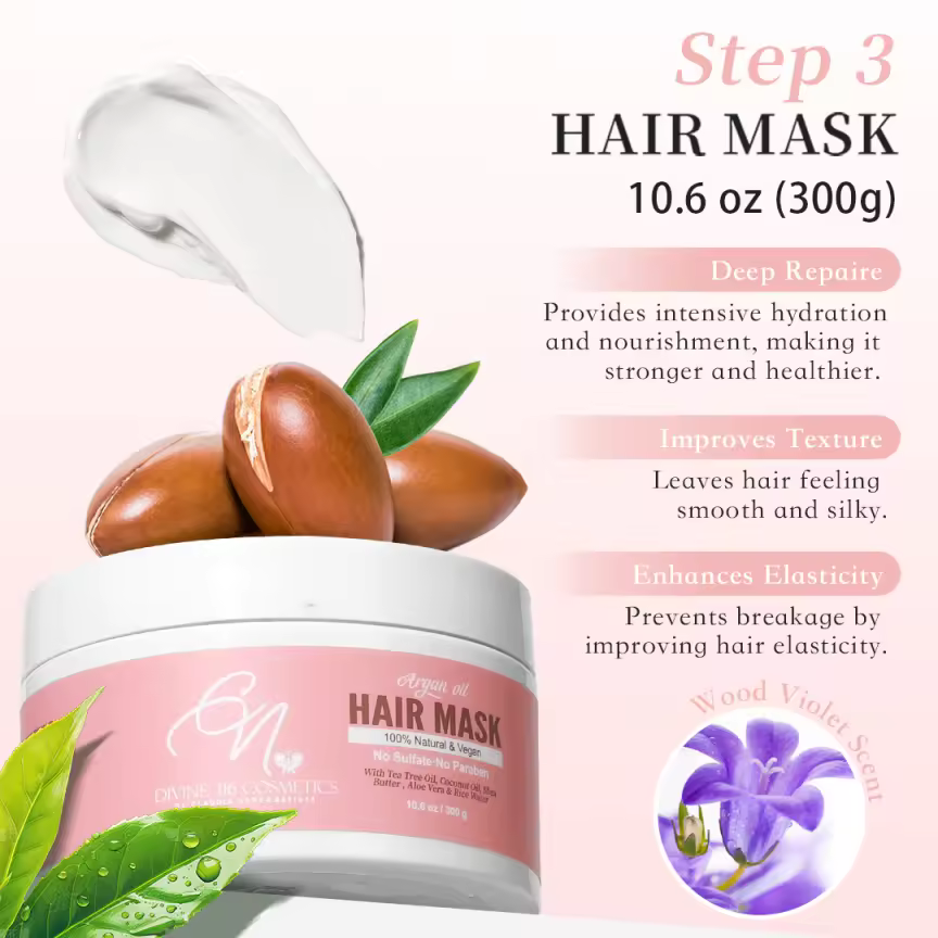 Indulge your hair with Divine316's luxurious hair mask, made from 100% natural ingredients and enriched with nourishing Argan oil and coconut oil. Hydrate and restore moisture to your locks while nourishing your scalp for healthy, beautiful hair. Treat yourself to the divine experience of Divine316 Hair Mask.