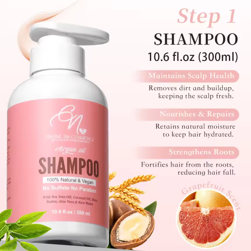 Indulge in the opulence of our Argan Oil Divine316 Shampoo. Made with 100% natural, vegan ingredients and free from sulfates, this luxurious shampoo nourishes your hair and scalp with the power of argan oil. Say goodbye to itchy scalp and irritated skin, and hello to healthy, luscious locks.